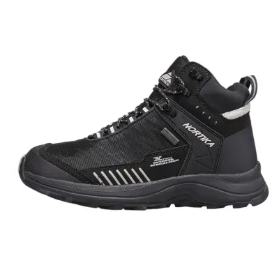 Современная компоновка и качественные материалы делают ботинки Editex Nortika отличным выбором для пеших походов, а тёмный дизайн позволяет носить их на городских улицах. Верхний слой ботинок состоит из комбинации текстиля и нубука, обеспечивая высокие износостойкие характеристики, что в сочетании с водоотталкивающей пропиткой защитит ноги владельца от промокания. Мембрана, выполненная по технологии Waterproof Windproof Breathable (WWB), наделяет ботинки не только влагозащитными свойствами, но и обеспечивает высокие ветрозащитные характеристики, ослабляя поток ветра за счёт микроскопических пор, а за счёт воздухопроницаемости ботинки сохраняют комфортный микроклимат внутри. Изделие оборудовано усилением носка и пятки, тем самым защищая ноги владельца от ударов об неровности. Специальная стелька OrthoLite сохранит комфортные условия для ног за счёт антимикробной пропитки, что позволяет предотвратить образование неприятного запаха и обеспечит вентиляцию стопы ног. Ботинки создают эффективное распределение нагрузки при ходьбе за счёт подошвы Ultra Slip Protection (USP), а развитый рисунок протектора создаёт максимальное сцепление с поверхностью со сложным рельефом. Специальные светоотражающие вставки позволяют быть заметным в тёмное время суток. Надёжную посадку на ноге обеспечивается за счёт качественной шнуровки на крепких петлях, позволяя ботинкам надёжно держаться в самых сложных условиях. Использование современных материалов позволило создать обувь для самых разных условий, обеспечивая высокую степень износостойкости, в результате чего сохраняя свою форму и цвет после длительного ношения. Утилитарный чёрный дизайн с использованием белых вставок позволяют носить ботинки как во время походов, так и в городе, отлично сочетаясь с различными элементами одежды.Характеристики:
