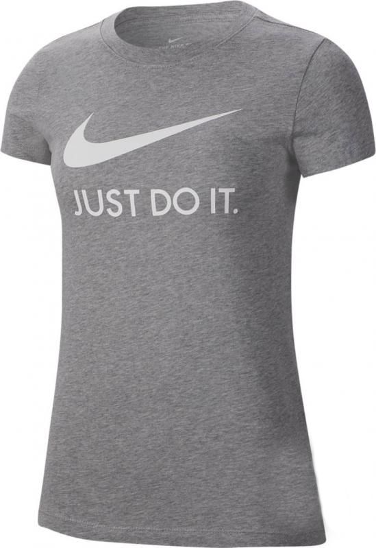 Повседневная спортивная футболка Nike Sportwear JDI для девушек с активным образом жизни. Современные материалы дарят комфорт и ощущение легкости в течение всего дня. Фирменный дизайн футболки легко узнаваем и остается актуальным каждый сезон. Практичный серый цвет в сочетании с графикой «Just Do It» создает ваш собственный стиль. Благодаря такой расцветке, модель легко сочетается с любыми вариантами одежды. Футболка подойдет, как для занятий спортом, так и повседневного ношения. Материал джерси на основе хлопка приятно ощущается на теле и обладает высокой износостойкостью. Ткань не требует частого ухода, не растягивается и не закатывается со временем. Круглый вырез и плоские швы не доставляют дискомфорта во время движений и не раздражают кожу. Стандартный крой позволяет активно двигаться без дискомфорта. Оптимальная длина футболки и рукавов, не дает ей задираться, при движениях руками или наклонах. Особенности и преимущества: