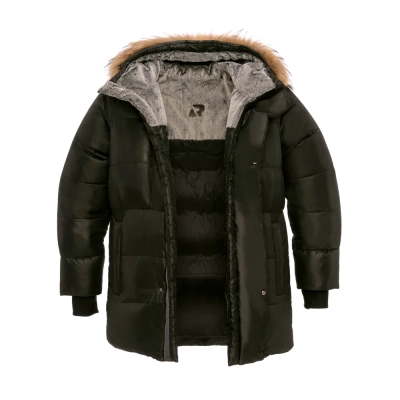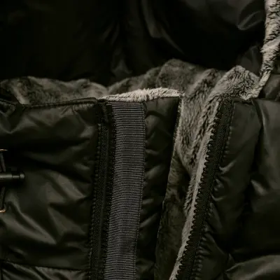 - Поклад куртки в области кокетки и подклад капюшона в области воротника утеплены материалом Velboa
