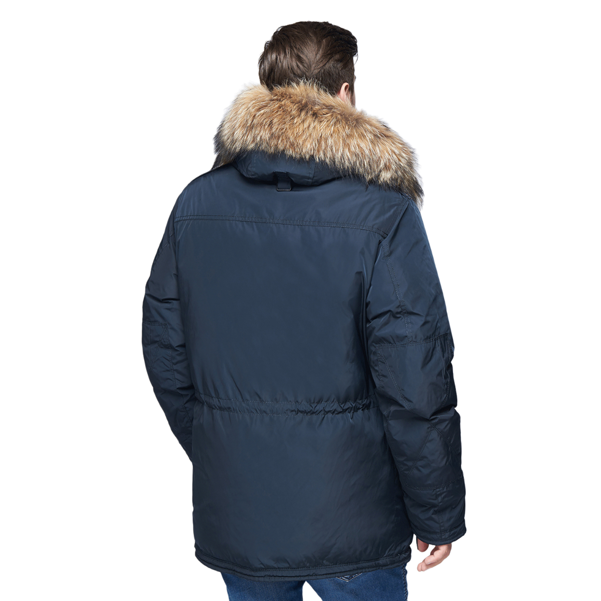 - Регулируемый с помощью кулисок капюшон, отделанный мехом