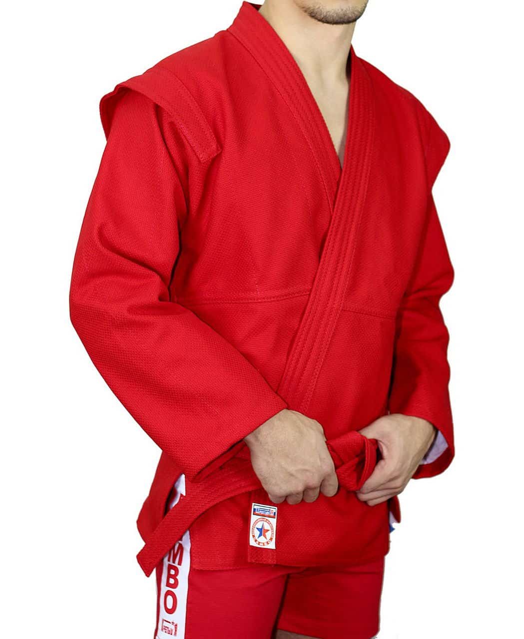 Спортивная куртка в ярко красном цвете для занятий самбо предназначена для тренировок и участия в международных и всероссийских соревнованиях. Куртка выполнена из 100% хлопка, отличается высокой прочностью и воздухопроницаемостью. В куртке для самбо вы сможете с комфортом отрабатывать любые упражнения и спарринговаться. Хлопок сохраняет оптимальную температуру тела и впитывает лишнюю влагу. Благодаря высокому запасу прочности, куртка с поясом не растягивается со временем и не истирается. Внутренний хлопковый подклад добавляет комфорта, приятно прилегает к телу и защищает кожу от натирания. Куртка имеет сертификацию федерацией самбо. В комплект входит прочный пояс в цвет куртки. Особенности и преимущества:
