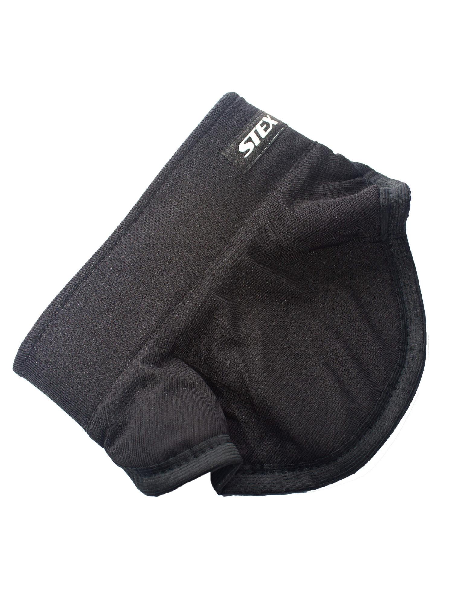 Защита выполнена из плотного полиэстера и изолона. Полностью прикрывает шею, горло, и ключицы хоккеиста. Помогает избегать травм, смягчая удар. Внутренняя подкладка из изолона, отлично поглощает влагу, предотвращая запотевание. Размер регулируется застежкой - липучкой.